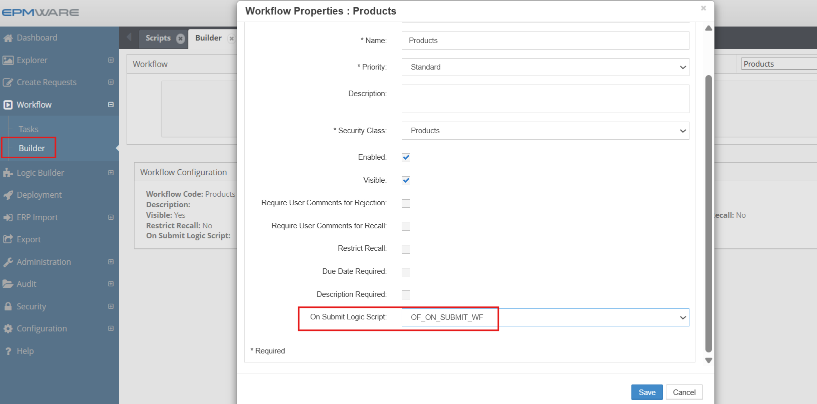 2.Assign this Logic Script in the Workflow screen as shown below: