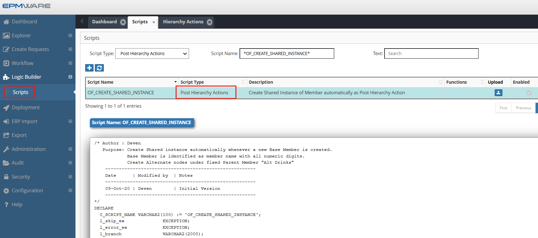 1.Create Post Hierarchy Action Logic Script as shown below: