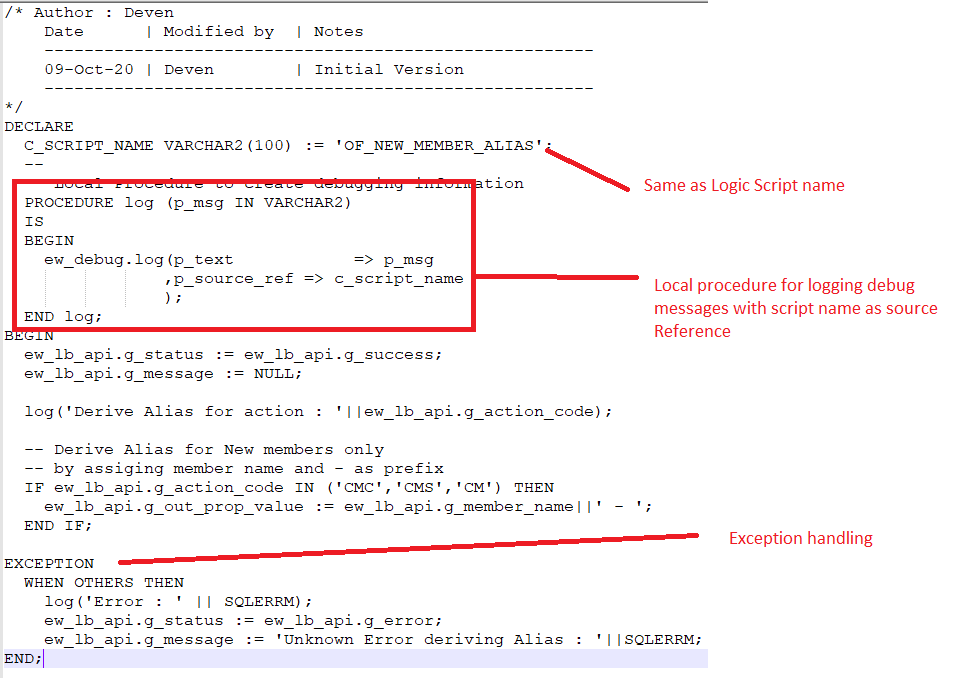 Logic Scripts are written in Oracle PL/SQL.